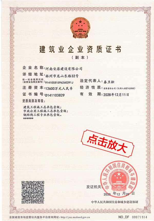 滔滔黃河哺育了中華民族拼搏向上的奮斗精神,巍巍太行造就了中原兒女的紅旗渠精神。百萬林州人下太行,鑄就了中國建筑之鄉(xiāng)響當當?shù)囊燮放啤:幽习簿咏ㄔO(shè)有限公司從誕生起血液里就流淌著紅色基因,秉承“安得廣夏千萬間,大庇天下寒士俱歡顏”的擔當精神,用鋼筋混凝土筑起了高樓大廈,也用一流品質(zhì)、家國情懷打造了安居建設(shè)的輝煌成績。公司成立于2012年,注冊資金12600萬元,公司成立至今,擁有建筑,市政施工總承包等十項一級資質(zhì);其他二級等資質(zhì)共二十余項。公司秉承質(zhì)量第一,服務(wù)為主,堅持垂直管理,從不設(shè)立分公司等分支機構(gòu)。